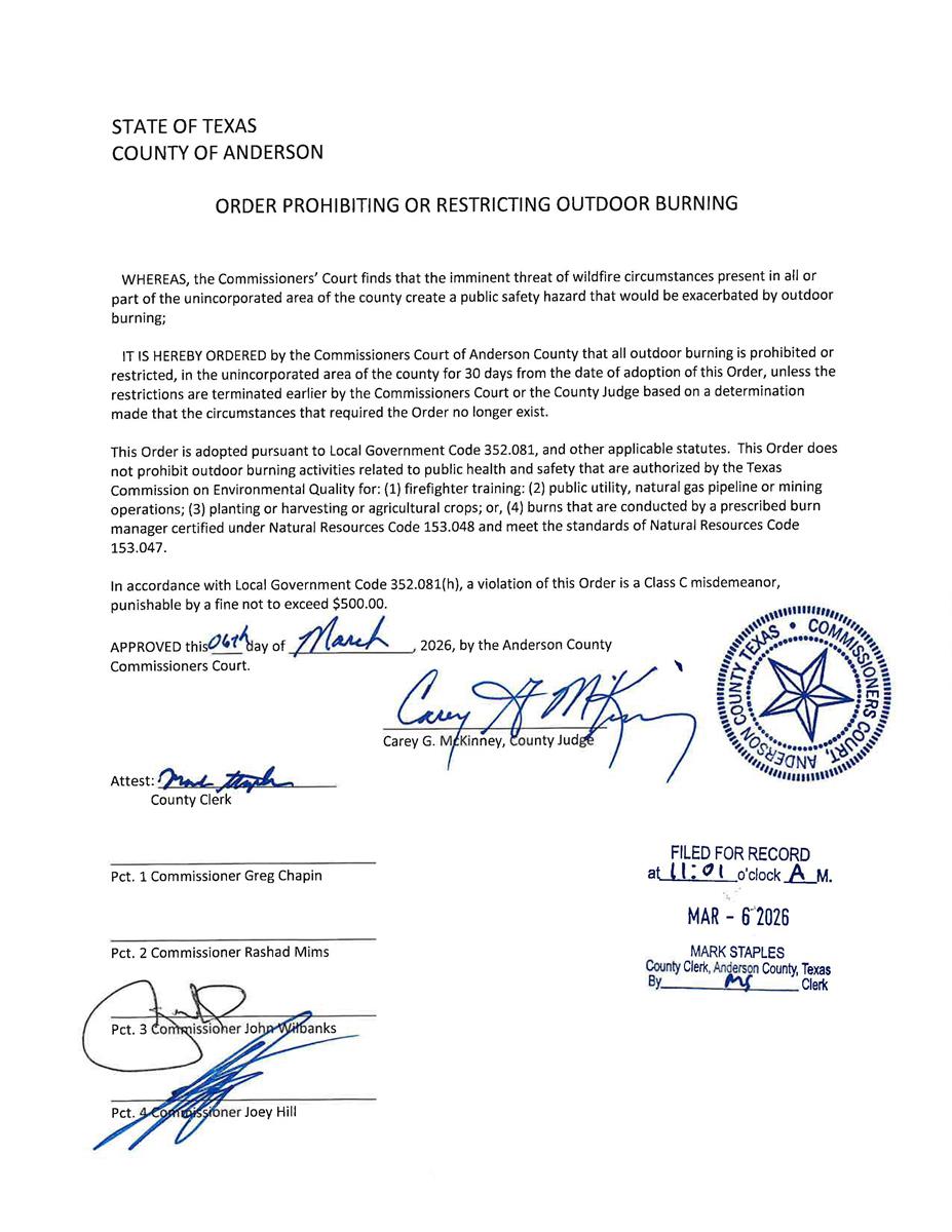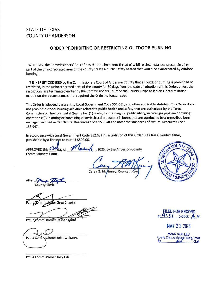 Our mission at Anderson County Emergency Management office is to prepare, safeguard and protect the residents and property of Anderson County from the effects of disasters through effective planning, preparation, response, and recovery activities. To accomplish this mission, Anderson County Emergency Management Team continually coordinates with Federal, State, and Local offices that provide emergency services to develop maintain and coordinate a comprehensive emergency management plan.